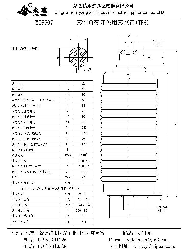 YTF507真空負荷開關用真空管TF8
