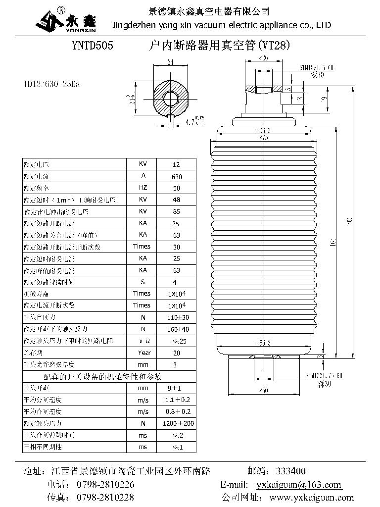 YNTD505戶内斷路器用真空管VT28